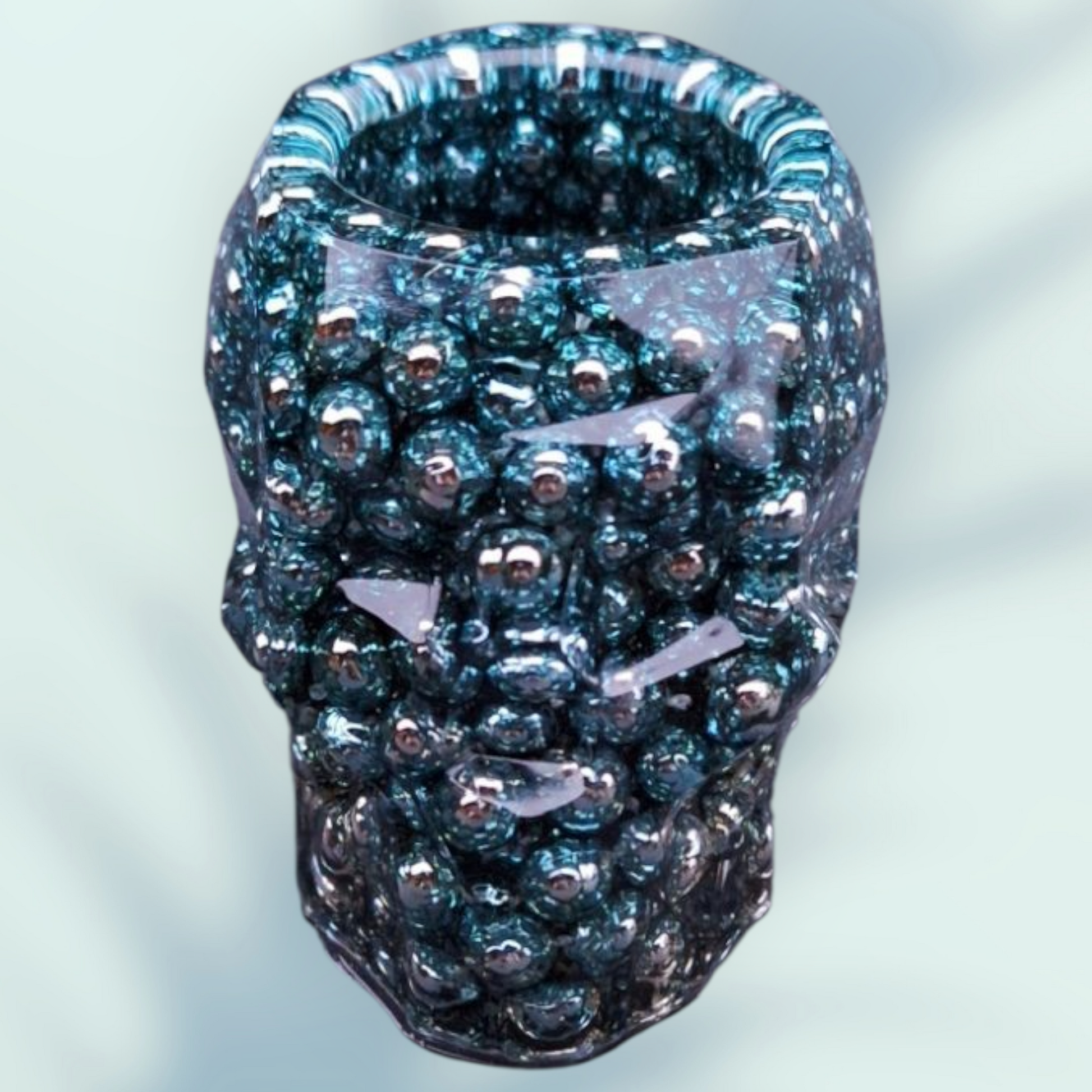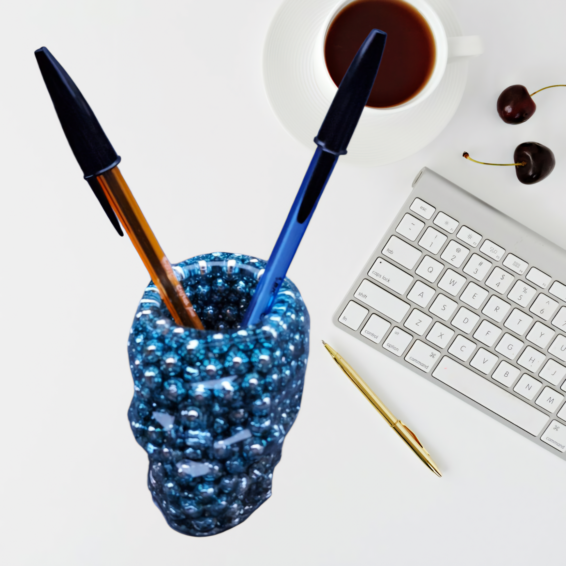 đïž Pot Ă Stylos "Skull" en RĂ©sine Ăpoxy â Bleu PerlĂ©