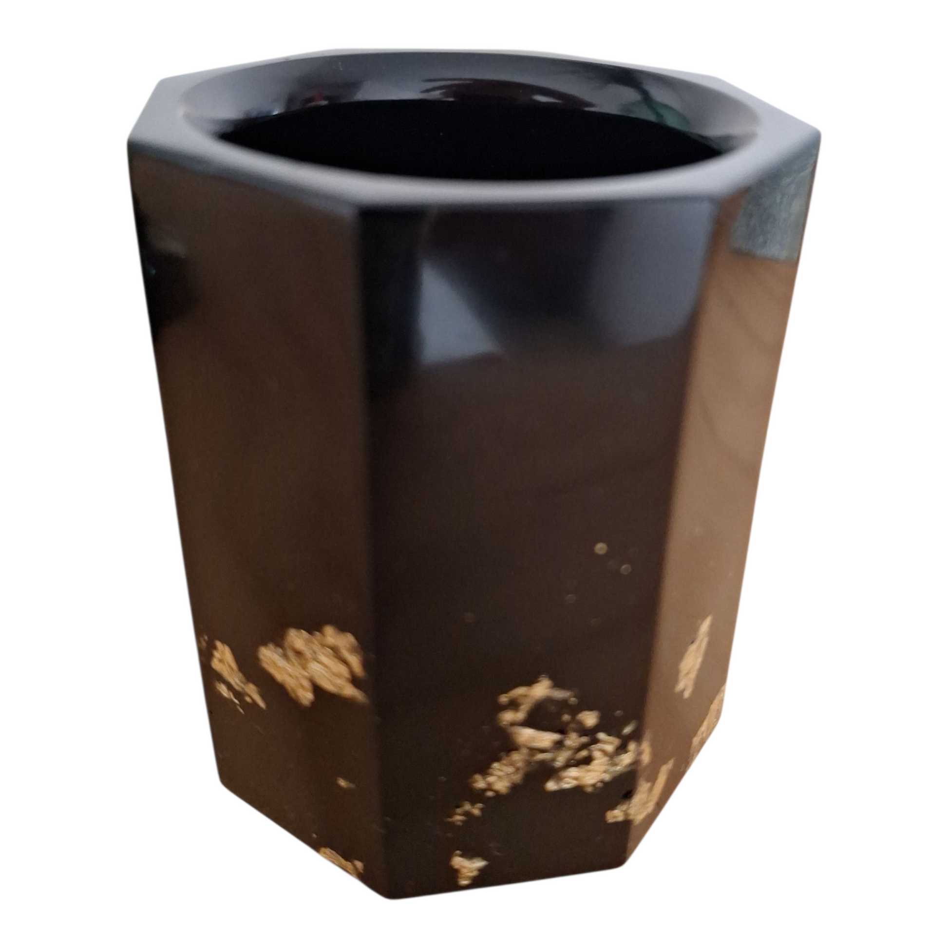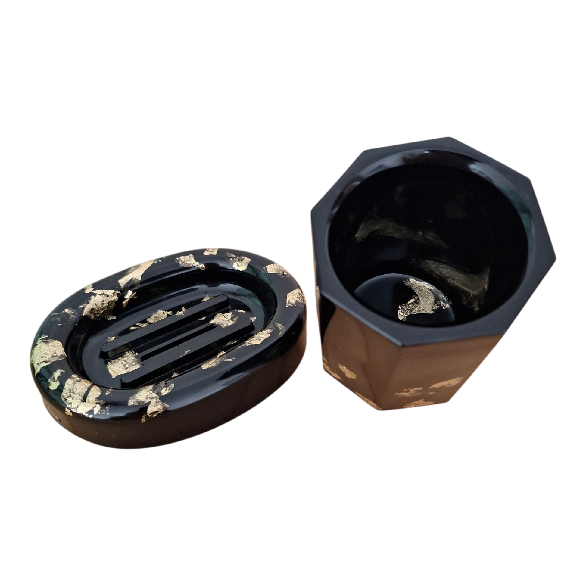 Apportez une touche d’élégance à votre salle de bain avec cet ensemble artisanal en résine époxy noir et or. Ce set comprend un porte-savon raffiné et un gobelet élégant pouvant servir de verre à brosse à dents ou de pot de rangement. Chaque pièce est coulée à la main et décorée de feuilles dorées qui apportent un effet chic et unique à votre intérieur. Résistant, facile à nettoyer et durable, cet accessoire de salle de bain allie praticité et design moderne. Sa finition brillante et ses contrastes noir profond et éclats dorés en font un véritable objet de décoration, idéal pour sublimer votre quotidien ou offrir en cadeau. Parfait pour compléter une salle de bain au style contemporain, cet ensemble noir et or se marie facilement avec un décor épuré, minimaliste ou luxueux. Offrez-vous une création unique et faite main, qui transformera vos gestes du quotidien en un moment raffiné.