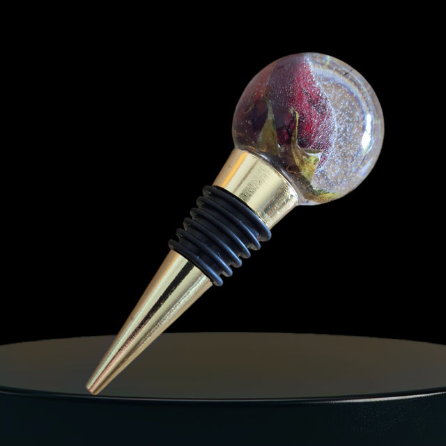 Ajoutez une touche d'originalité à vos bouteilles avec ce bouchon en résine époxy, décoré d'une rose rouge séchée incluse. Son design unique et coloré en fait un accessoire parfait pour sublimer vos bouteilles de vin, spiritueux ou huiles aromatisées.