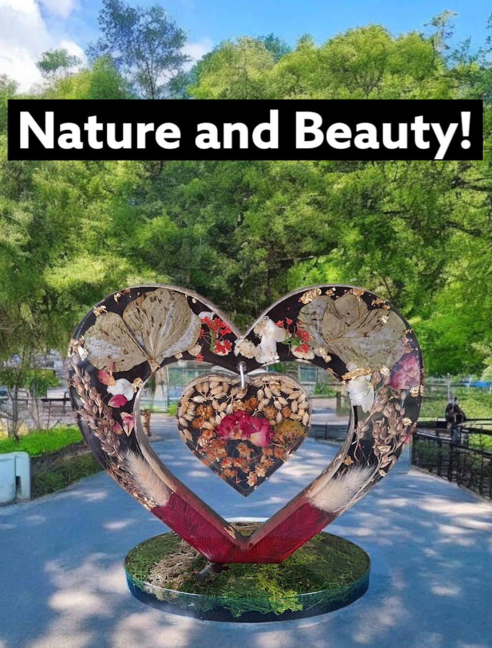 Apportez une touche de nature et d’originalité à votre intérieur avec ce magnifique cœur en résine époxy incrusté de fleurs séchées et de feuilles naturelles.