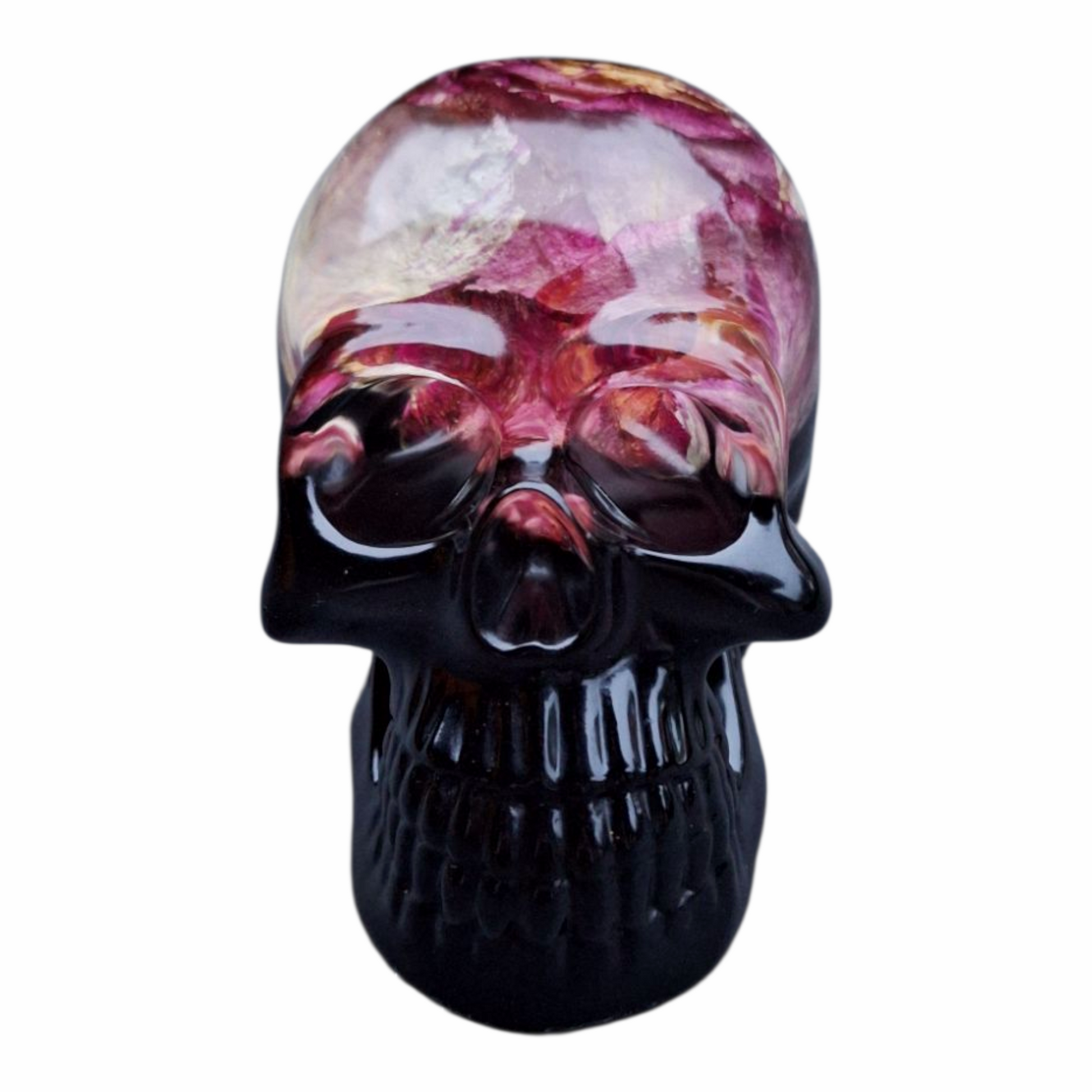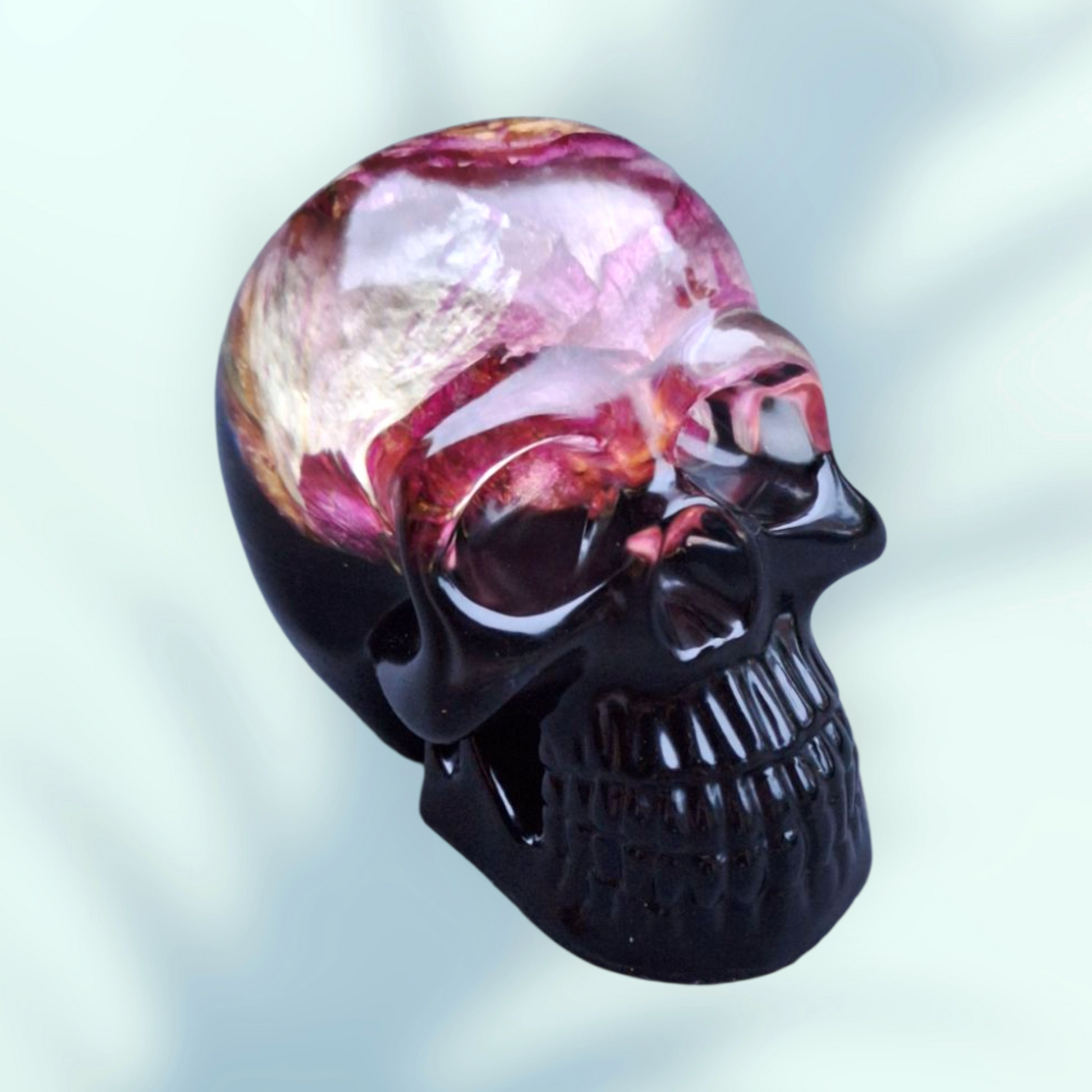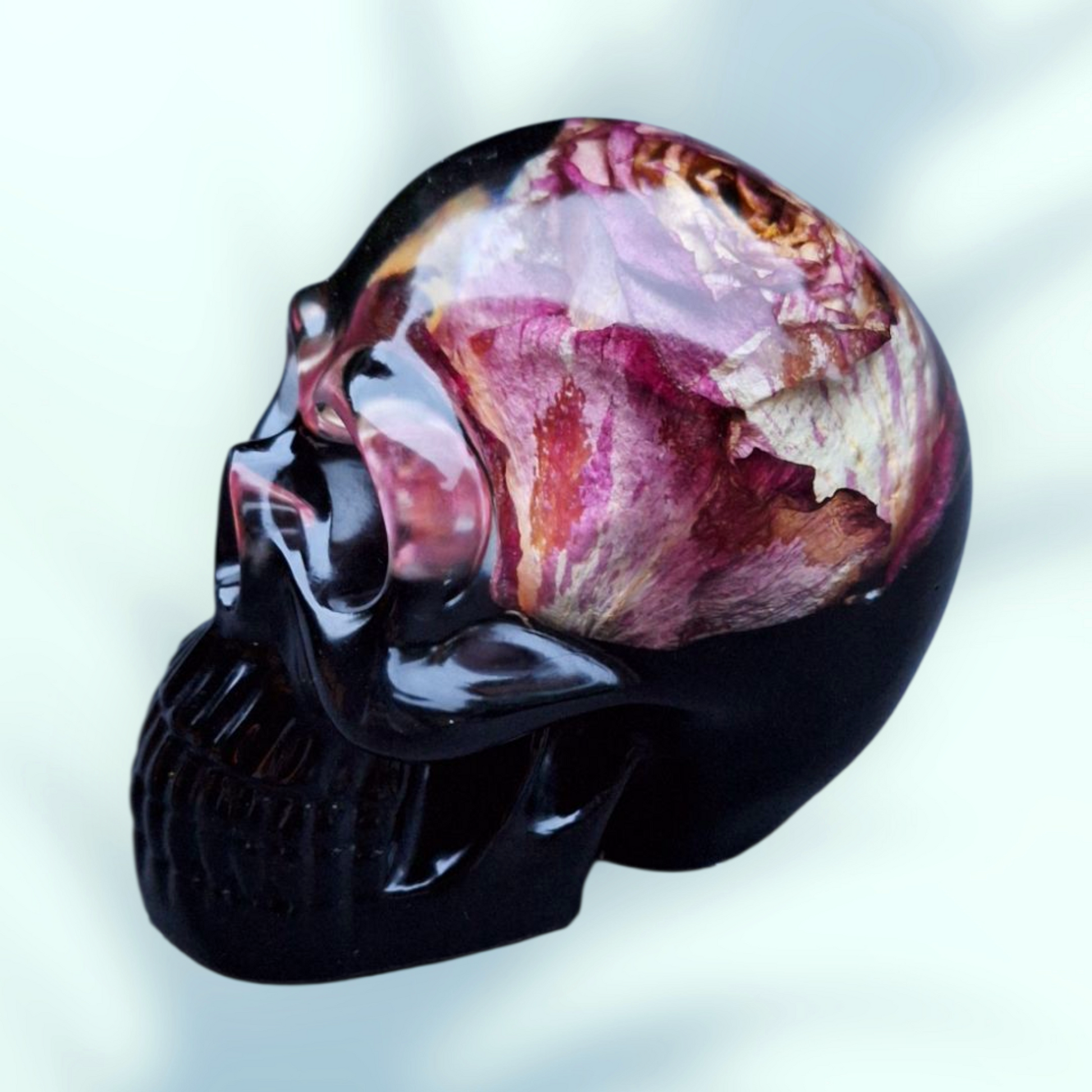 Apportez une touche originale et élégante à votre décoration avec ce crùne unique en résine époxy. Fabriqué à la main, il marie la force du noir profond à la douceur de véritables fleurs séchées. Une piÚce captivante, idéale pour une déco intérieure audacieuse ou un cadeau singulier.