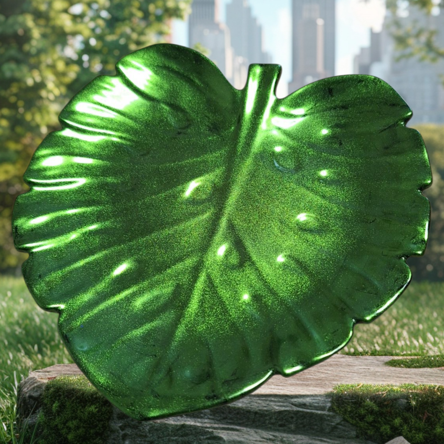 Ajoutez une note végétale chic à votre intérieur avec ÉMERAUDE, un vide-poches en résine époxy inspiré de la nature. Sa forme de feuille texturée et son vert profond aux reflets scintillants sont obtenus grâce à l’usage de poudres de mica, pour un rendu lumineux et moderne.