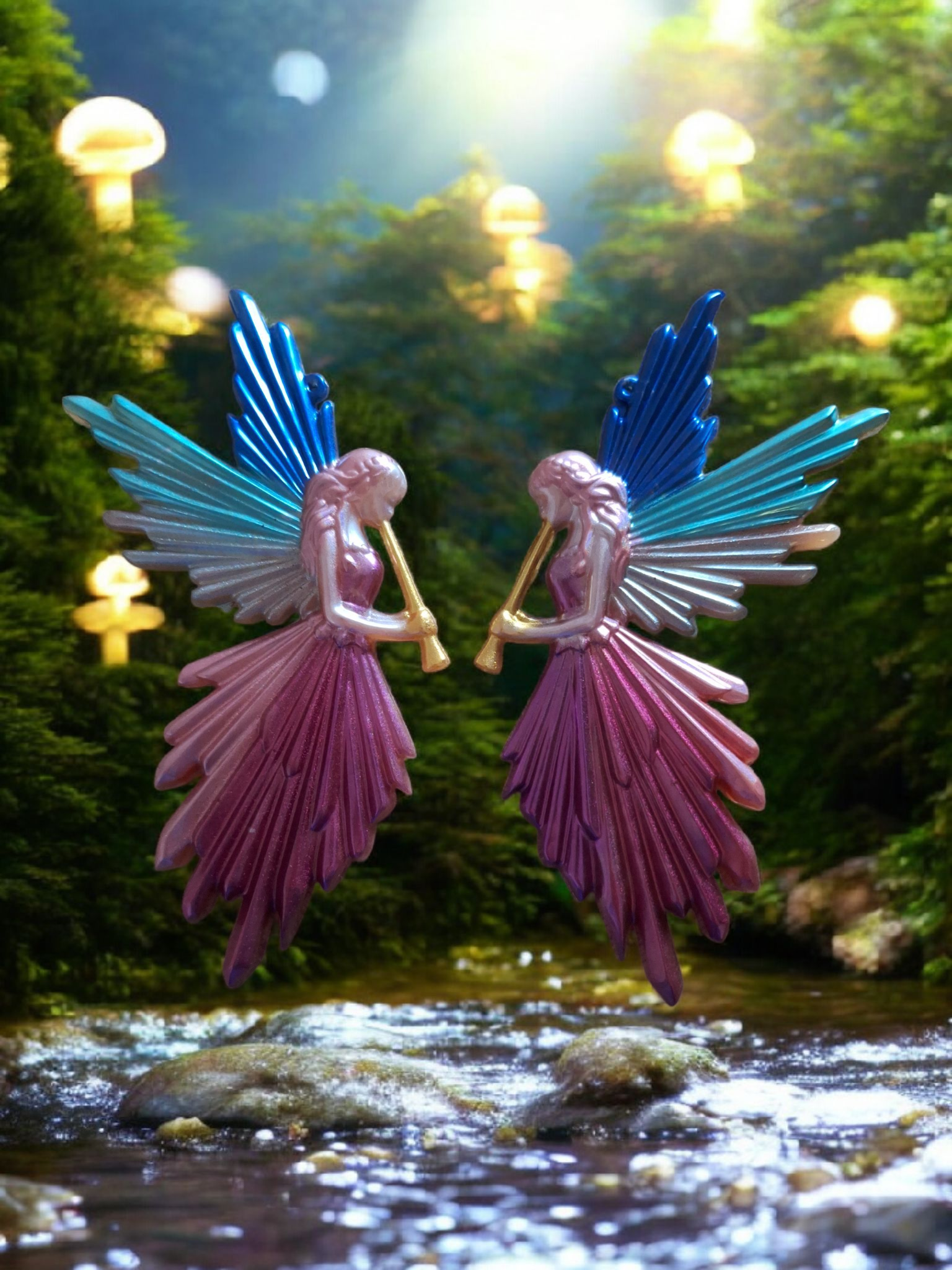Fées décoratives faites main en résine époxy. Ailes scintillantes aux reflets bleus et roses pour une touche magique dans votre intérieur. Création artisanale unique, idéale pour offrir ou décorer votre maison.