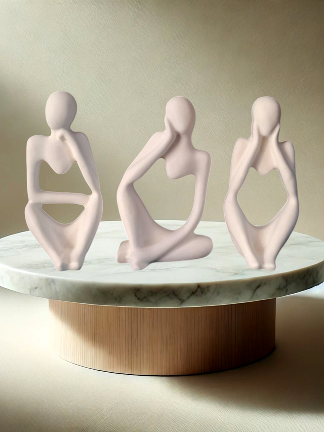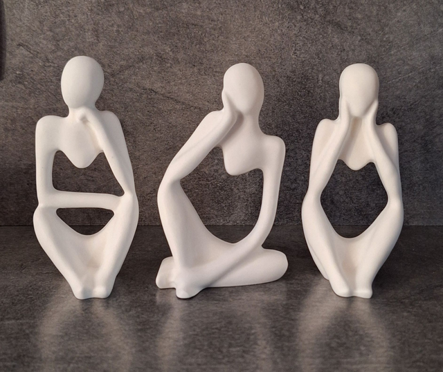 Découvrez mes trois penseurs en résine naturelle, des pièces de décoration artisanales qui incarnent l'élégance et la réflexion. Chaque figurine, façonnée à la main avec soin, capture une pose contemplative unique. Parfaits pour sublimer votre intérieur, ces objets d'art apportent une dimension intellectuelle et sophistiquée à votre espace. Idéals comme cadeaux pour les amateurs d'art et de décoration, ils transforment tout environnement en galerie personnelle. Un ensemble incontournable pour ceux qui apprécient l'authenticité et le travail artisanal.