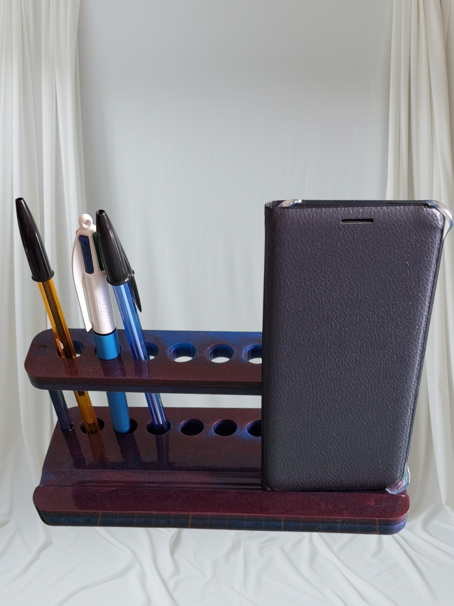 Organisateur de Bureau Résine colorée Artisanale Porte-Crayons & Téléphone ou carnet.