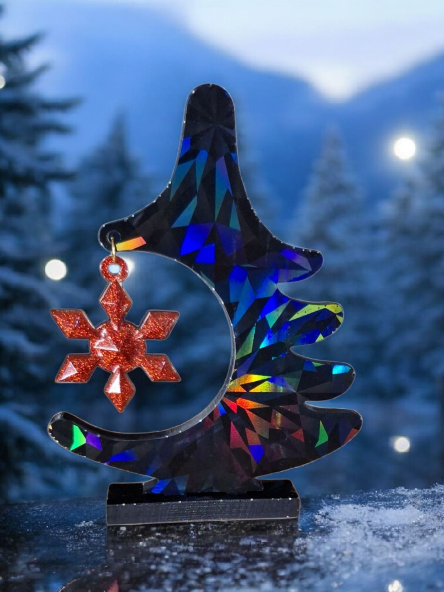 Sapin de Noël Décoratif en Résine Scintillante - Collection Fêtes Holographiques