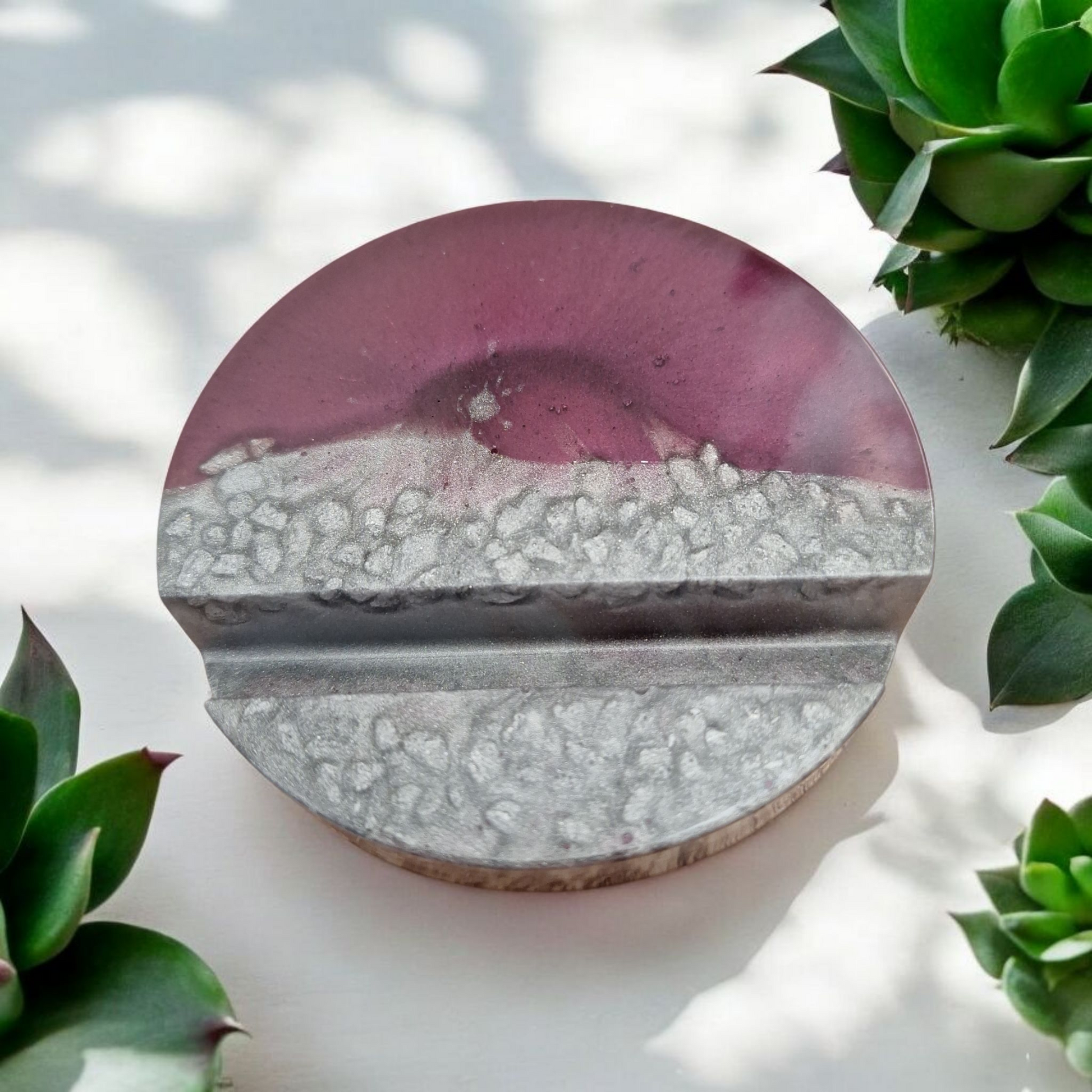 Support de téléphone ou tablette en résine époxy mauve et argent – Élégant et fait main