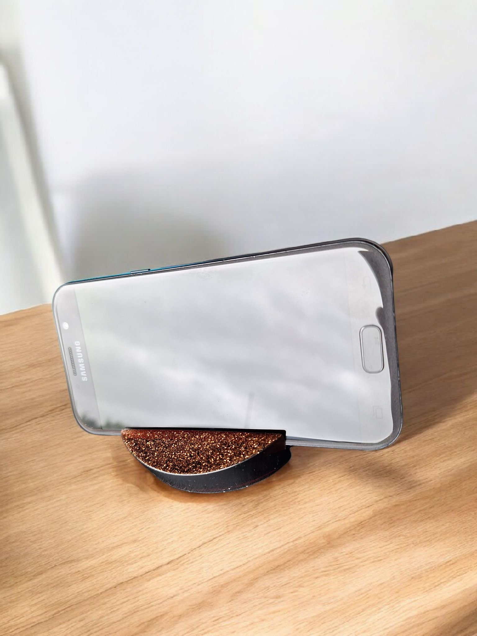 ✨ Support de Téléphone & Tablette en Résine Époxy – Marron Scintillant Cuivre