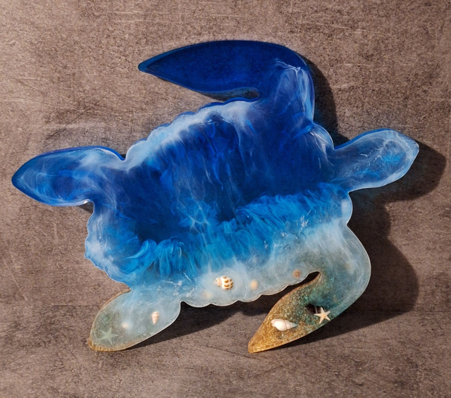 💡C'est une pièce artistique et artisanale qui évoque un paysage côtier relaxant. L'eau de la mer est recréée avec un mélange de résine transparente qui capture l'aspect cristallin de l'eau de mer. Des nuances de bleu clair et de bleu plus foncé évoquent les variations de profondeur et de clarté de l'océan. De petites vagues semblent caresser doucement la plage. Pour ajouter à l'authenticité, du sable, de petits coquillages sont incorporés dans le décor, créant ainsi une scène sous-marine pittoresque autour de la tortue.